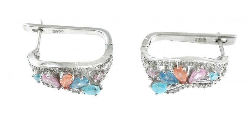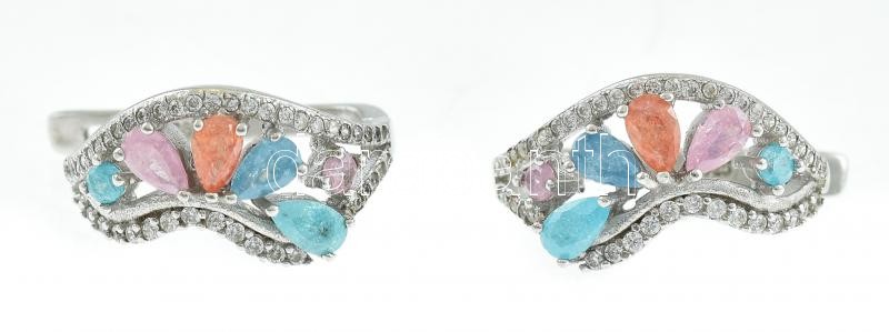 Beschreibung: Ezüst(Ag) fülbevalópár színes kövekkel, jelzett, h: 2 cm, bruttó: 7 g