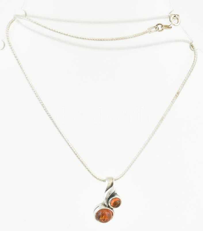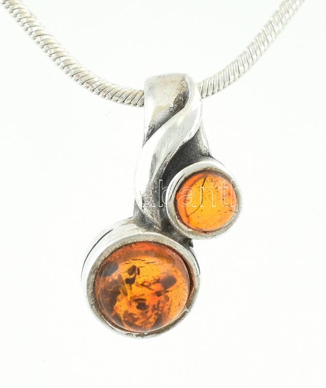 Beschreibung: Ezüst(Ag) nyaklánc borostyán medállal, jelzett, h: 44 cm, bruttó: 10,97 g