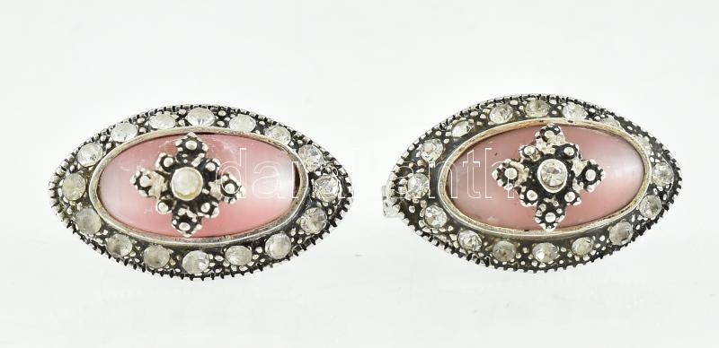Beschreibung: Ezüst(Ag) rózsaszín gyöngyházas fülbevalópár, jelzett, h: 2,5 cm, bruttó: 8,25 g