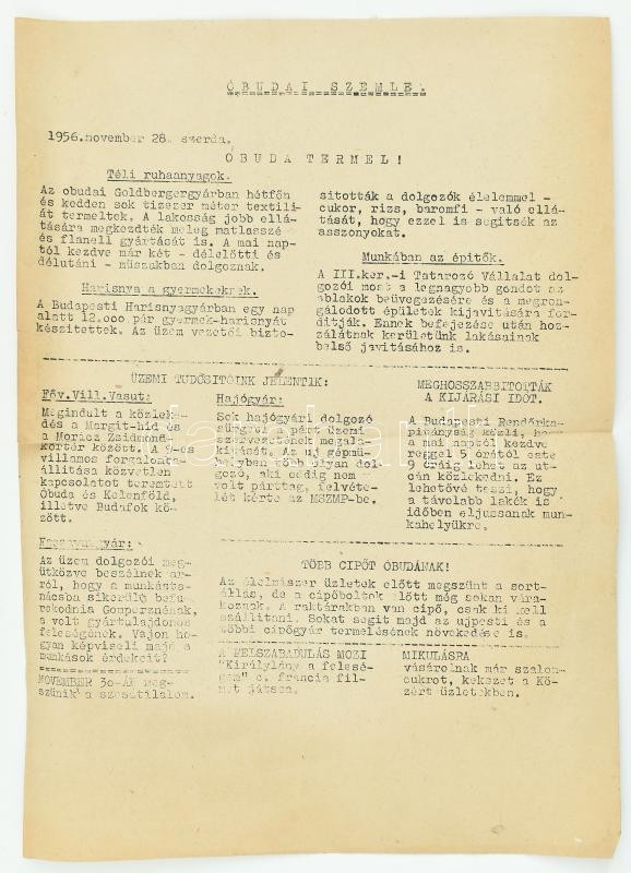1956 Óbudai Szemle november 28. száma. Szamizdat szerű Kádár-hű kiadás... https://www.darabanth.com/de/411-Fernauktion/411.0/Kunst-Dokumente-andere-Sammelgebiete/Drucksachen~1500002/1956-Obudai-Szemle-november-28-szama-Szamizdat-szeru-Kadar-hu-kiadas-a-forradalom-vegero~II2560790