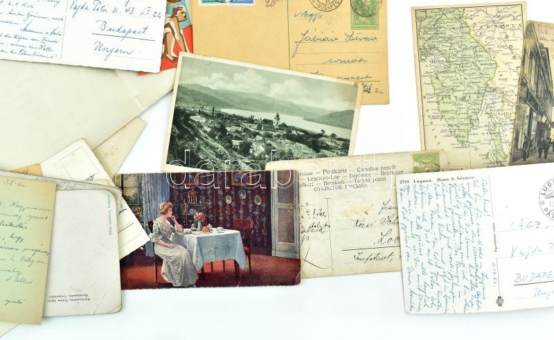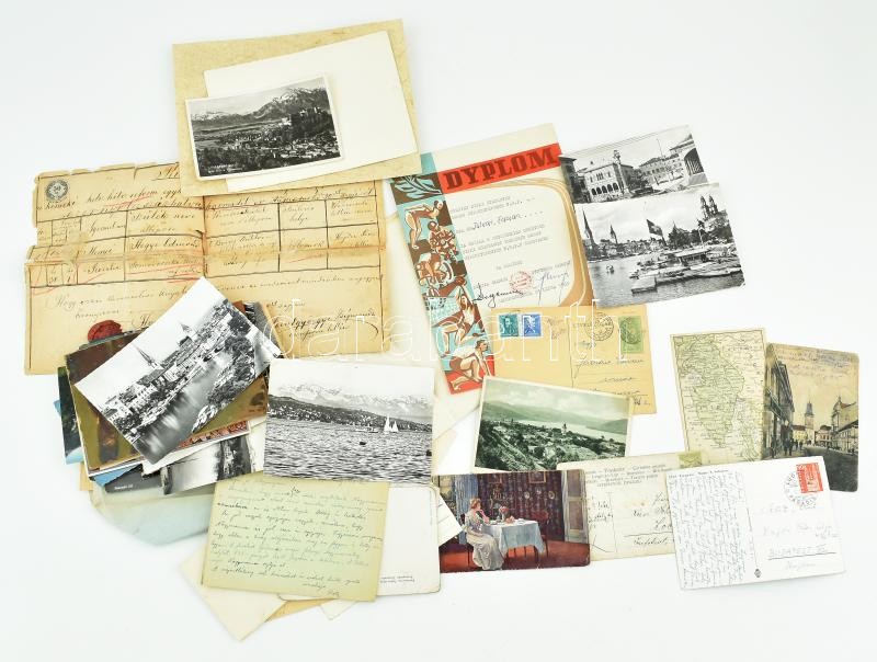 Beschreibung: Vegyes papírrégiség tétel, benne sok háború előtti képeslappal