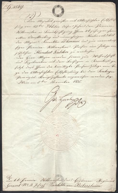 1835 biebersheimi Zanbelli József huszár őrnagyi kinevezése szárazpecs... https://www.darabanth.com/de/411-Fernauktion/411.0/Kunst-Dokumente-andere-Sammelgebiete/Militaria~505029/1835-biebersheimi-Zanbelli-Jozsef-huszar-ornagyi-kinevezese-szarazpecsettel~II2562744