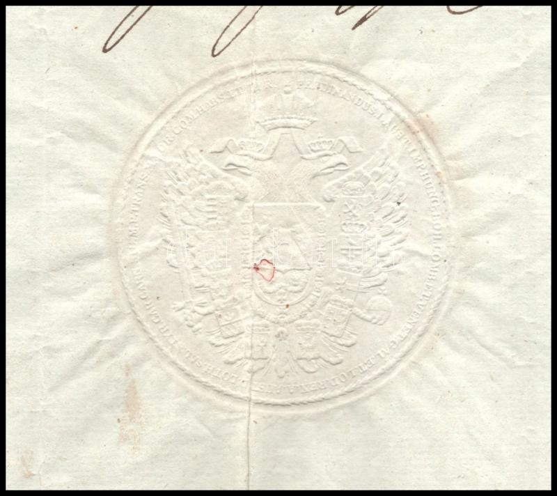 Beschreibung: 1835 biebersheimi Zanbelli József huszár őrnagyi kinevezése szárazpecséttel