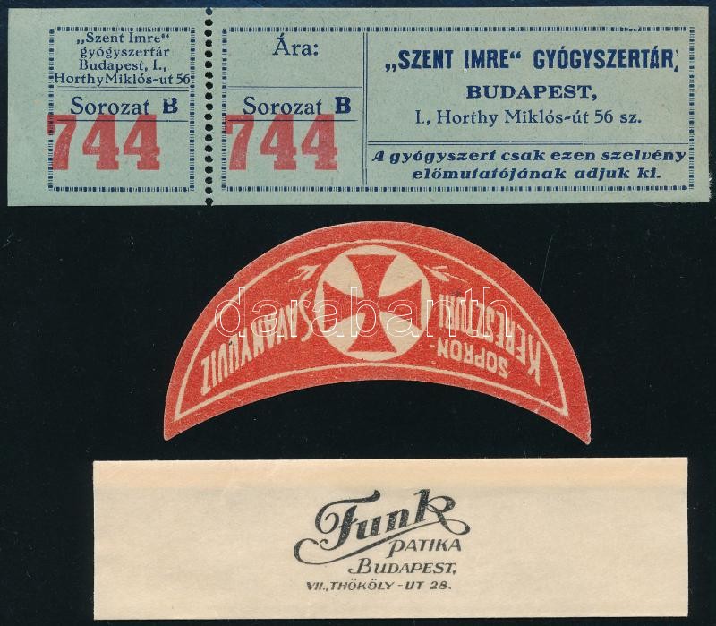 3 db címke és jegy (Funk Patika, Sopronkeresztúri Savanyúvíz, Szent Im... https://www.darabanth.com/de/411-Fernauktion/411.0/Kunst-Dokumente-andere-Sammelgebiete/Werbungen~505023/3-db-cimke-es-jegy-Funk-Patika-Sopronkereszturi-Savanyuviz-Szent-Imre-Gyogyszertar-Budapes~II2558168