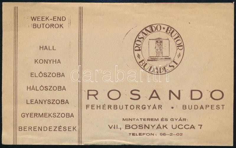 Rosando fehérbútorgyár számolócédula https://www.darabanth.com/de/411-Fernauktion/411.0/Kunst-Dokumente-andere-Sammelgebiete/Werbungen~505023/Rosando-feherbutorgyar-szamolocedula~II2559985