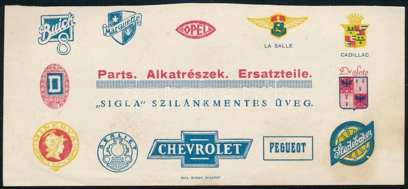 Sigla szilánkmentes üveg számolócédula https://www.darabanth.com/de/411-Fernauktion/411.0/Kunst-Dokumente-andere-Sammelgebiete/Werbungen~505023/Sigla-szilankmentes-uveg-szamolocedula~II2559980