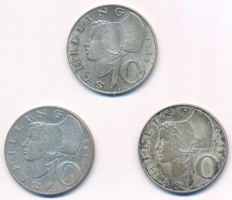 Austria 1957-1972.... https://www.darabanth.com/de/411-Fernauktion/411.0/Numismatik/Weltweit-Munzen~2000022/Ausztria-1957-1972-10Sch-Ag-3xklf-T1-2-patina-Austria-1957-1972-10-Schilling-Ag-3xdiff-CAU~II2561942