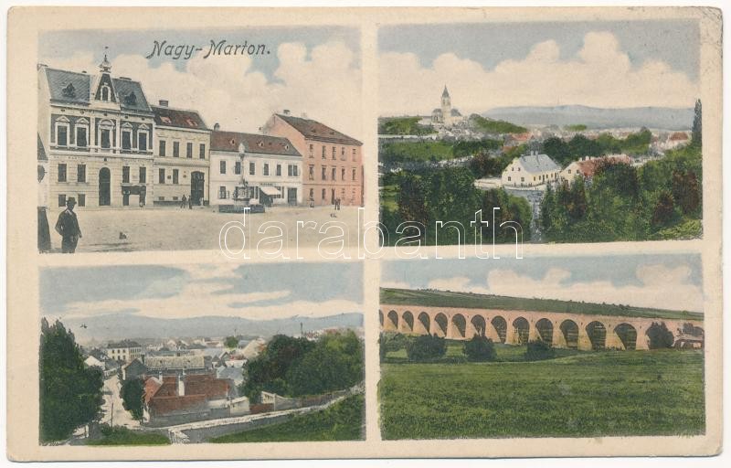 1916 Nagymarton, Mattersdorf, Mattersburg; híd, tér, takarékpénztár, üzlet / Brücke, Platz, Sparkassa, Geschäft / bridge, square, savings bank, shop