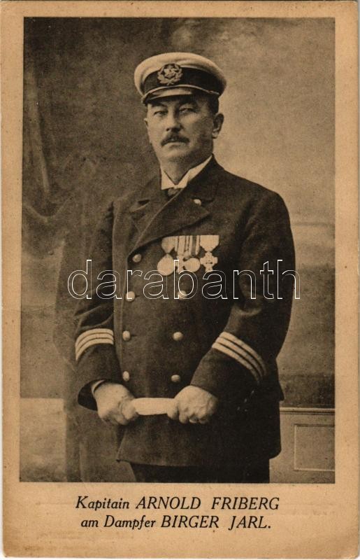 Kapitan Arnold Friberg am Dampfer Birger Jarl (EK) https://www.darabanth.com/de/412-Fernauktion/412.0/Ansichtskarten/Kriegsschiffe~2000039/Kapitan-Arnold-Friberg-am-Dampfer-Birger-Jarl-EK~II2521476