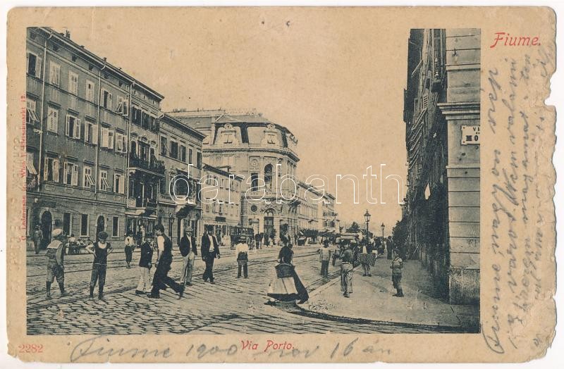 1900 Fiume, Rijeka; Via Porto / street (b) https://www.darabanth.com/de/412-Fernauktion/412.0/Ansichtskarten/Kroatien~2000010/1900-Fiume-Rijeka-Via-Porto-street-b~II2564040