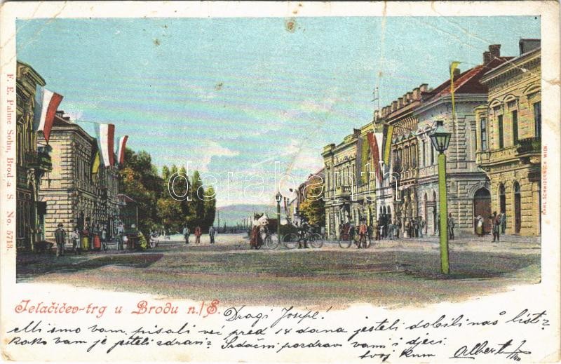 1902 Bród, Nagyrév, Slavonski Brod, Brod na Savi; Jelacicev trg / squa... https://www.darabanth.com/de/412-Fernauktion/412.0/Ansichtskarten/Kroatien~2000010/1902-Brod-Nagyrev-Slavonski-Brod-Brod-na-Savi-Jelacicev-trg-square-with-Hungarian-flags-tC3~II2295583