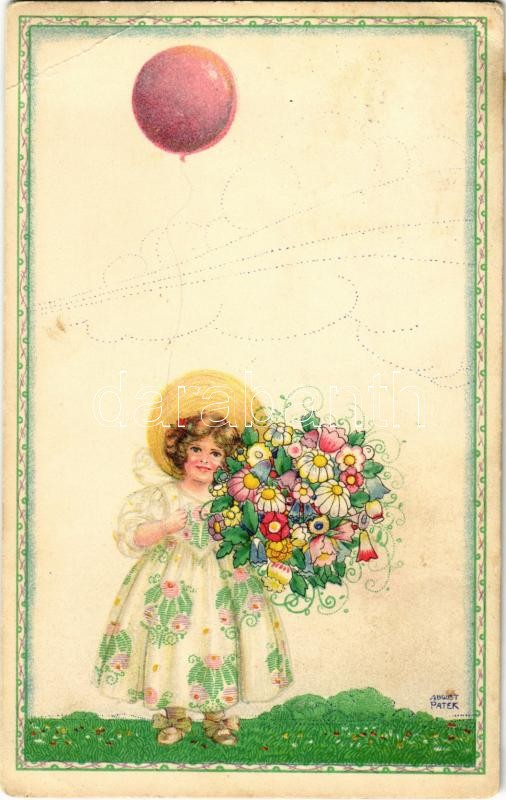 1918 Girl with flowers and balloon. P.J.G.W.I. Nr. 506-1. s: August Pa... https://www.darabanth.com/de/412-Fernauktion/412.0/Ansichtskarten/Kunstlerkarten~2000068/1918-Girl-with-flowers-and-balloon-PJGWI-Nr-506-1-s-August-Patek-EB~II2571760