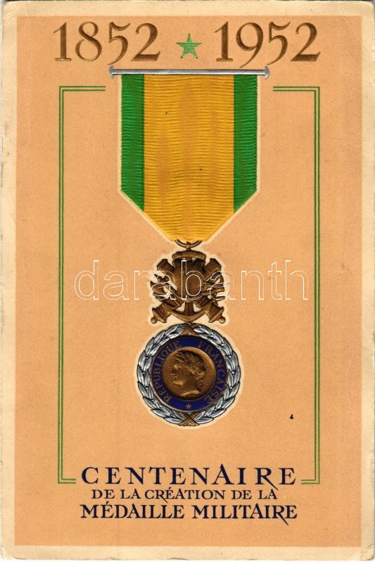 1852-1952 Republique Francaise. Centenaire de la Création de la Médaille Militaire / Centenary of the Creation of the Military Medal in France / A Francia Katonai érem megalkotásának századik évfordulója, dombornyomott, Emb. (EK)
