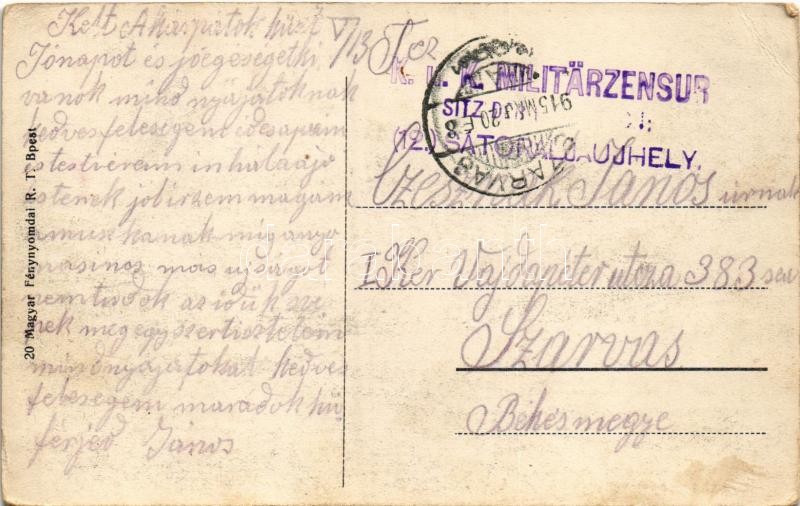 Beschreibung: 1915 Táborozás / Lager + "K.u.k. Militärzensur (12.) Sátoraljaújhely" (EK)