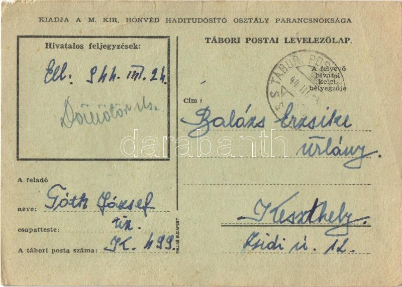 1944 Húsvéti üdvözlet. Kiadja a M. Kir. Honvéd Haditudósító Osztály Parancsnoksága. Tábori Postai Levelezőlap / WWII Hungarian military field postcard, Easter greeting, soldier with rabbit s: Markó Lajos (EB)