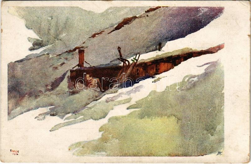 Beschreibung: Aus der Südtiroler Front / WWI Austro-Hungarian K.u.K. military art postcard, South Tyrolean front s: Fangh (kis szakadás / small tear)