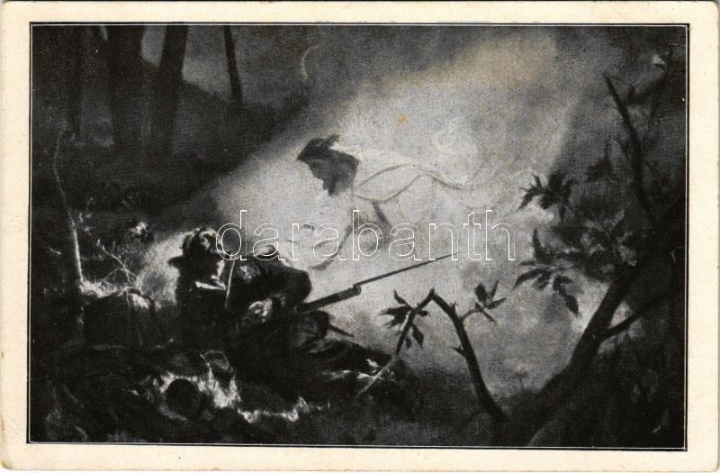 Beschreibung: Szenvedő imája / WWI Austro-Hungarian K.u.K. military art postcard, dying soldier's prayer (non PC) (EK)