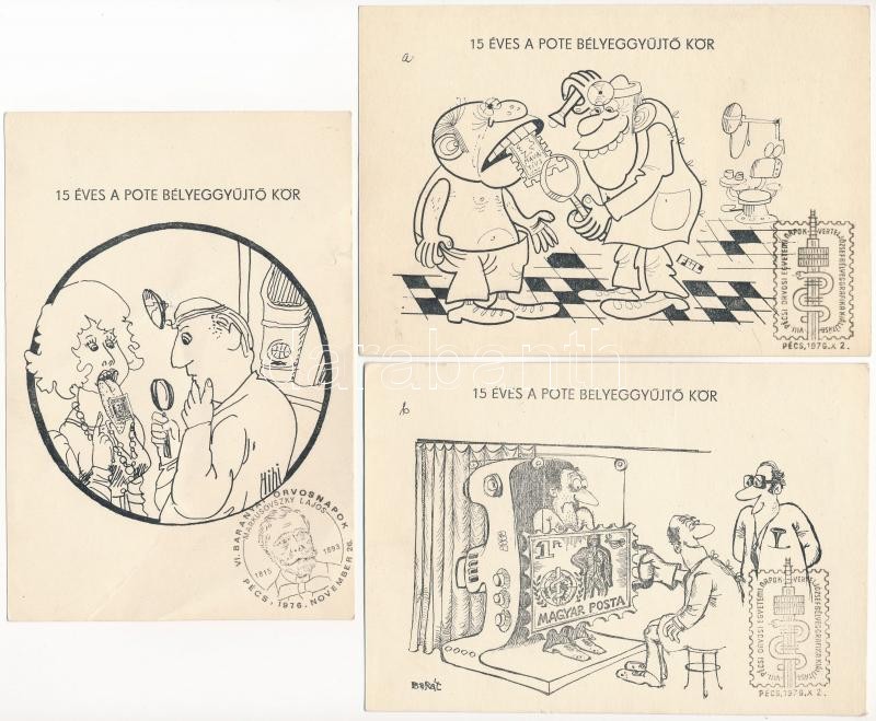 Beschreibung: 1976 15 Éves a POTE Bélyeggyűjtő Kör - 3 db modern képeslap