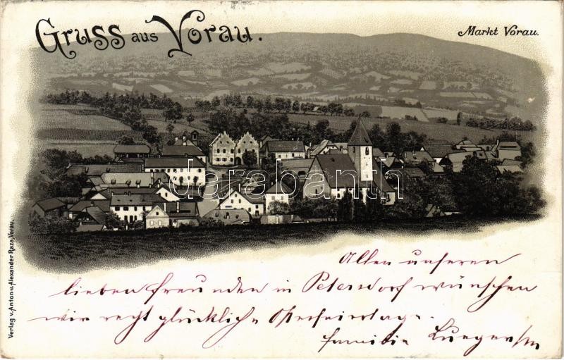1899 (Vorläufer) Vorau. litho https://www.darabanth.com/de/412-Fernauktion/412.0/Ansichtskarten/Osterreich~2000018/1899-Vorlaufer-Vorau-litho~II2533070