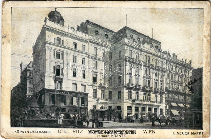1924 Wien, Vienna, Bécs; Hotel Ritz (vormals Krantz), Neuer Markt, Kär... https://www.darabanth.com/de/412-Fernauktion/412.0/Ansichtskarten/Osterreich~2000018/1924-Wien-Vienna-Becs-Hotel-Ritz-vormals-Krantz-Neuer-Markt-Karntnerstrasse-street-view-~II2562280