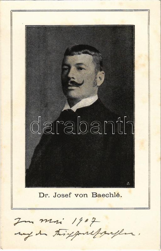 Dr. Josef von Baechlé österreichischer Realitätenbesitzer, Jurist und ... https://www.darabanth.com/de/412-Fernauktion/412.0/Ansichtskarten/Personlichkeiten~2000044/Dr-Josef-von-Baechle-osterreichischer-Realitatenbesitzer-Jurist-und-Politiker-CS-Austrian-p~II2500569