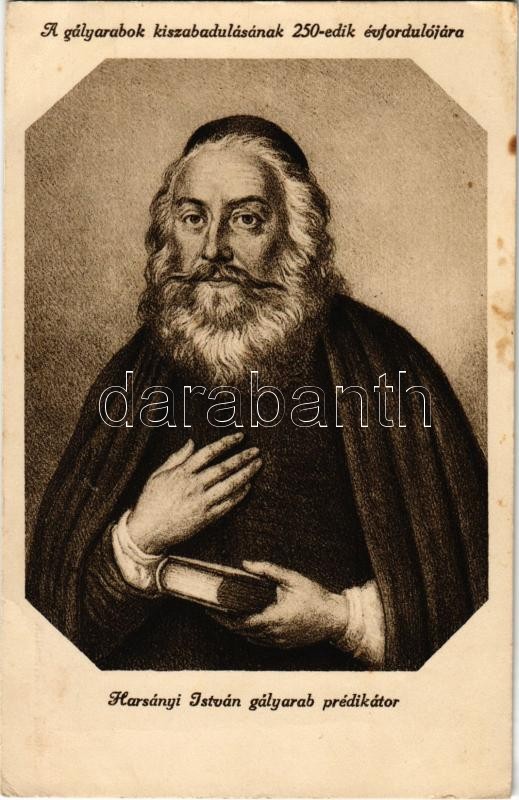 Harsányi István gályarab prédikátor. A gályarabok kiszabadulásának 250... https://www.darabanth.com/de/412-Fernauktion/412.0/Ansichtskarten/Personlichkeiten~2000044/Harsanyi-Istvan-galyarab-predikator-A-galyarabok-kiszabadulasanak-250-evfordulojara-A-~II2570644
