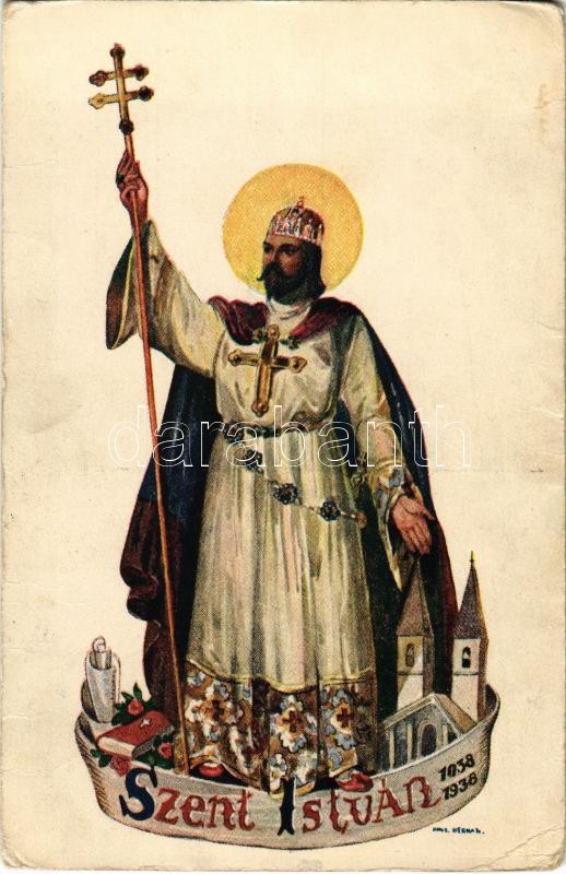 Szent István 1038-1938 / King Saint Stephen of Hungary (EB) https://www.darabanth.com/de/412-Fernauktion/412.0/Ansichtskarten/Personlichkeiten~2000044/Szent-Istvan-1038-1938-King-Saint-Stephen-of-Hungary-EB~II2570642