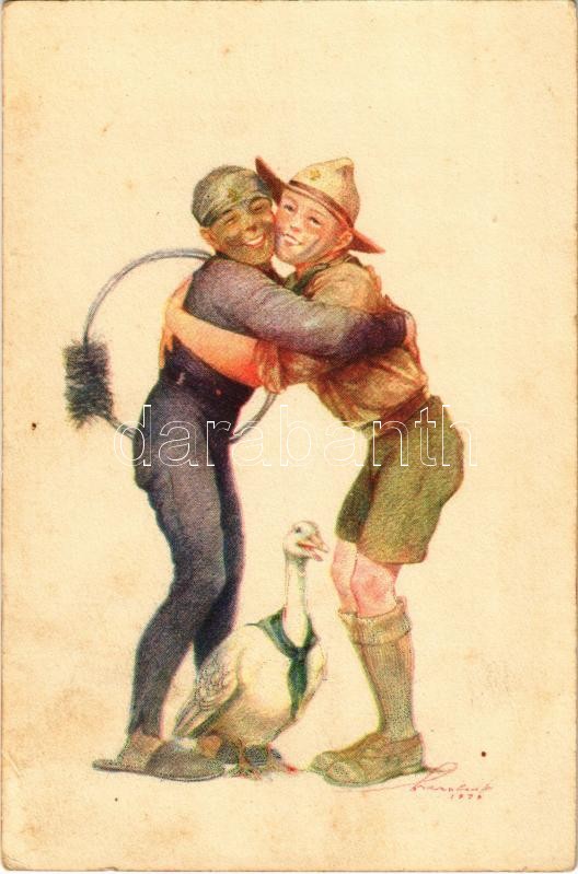 Beschreibung: 1934 A cserkész minden cserkészt testvérének tekint. A Magyar Cserkészszövetség kiadása / Hungarian boy scout art postcard s: Márton L. (EB)