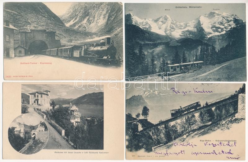 Beschreibung: HEGYI VASUTAK - 4 db régi külföldi képeslap, gőzmozdonyokkal / MOUNTAIN RAILWAYS - 4 pre-1945 European postcards with locomotives
