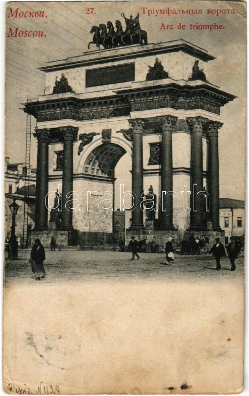 Moscow, Moscou; Arc de triomphe / Triumfal'naya Arka (EK) https://www.darabanth.com/de/412-Fernauktion/412.0/Ansichtskarten/RuC39Fland~2000064/Moscow-Moscou-Arc-de-triomphe-Triumfalnaya-Arka-EK~II2563610