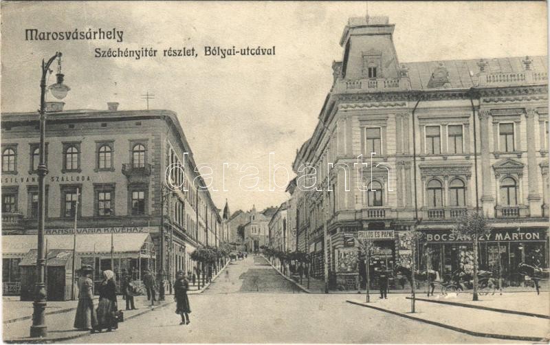 1912 Marosvásárhely, Targu Mures; Széchenyi tér, Bólyai utca, Transilv... https://www.darabanth.com/de/412-Fernauktion/412.0/Ansichtskarten/Siebenburgen~2000007/1912-Marosvasarhely-Targu-Mures-Szechenyi-ter-Bolyai-utca-Transilvania-szalloda-es-kave~II2305482