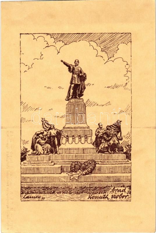 Beschreibung: Arad, Kossuth szobor. Kiadja a Délvidéki Egyetemi és Főiskolai Hallgatók Egyesülete / Kossuth's statue, monument, irredenta art postcard s: Lamoss
