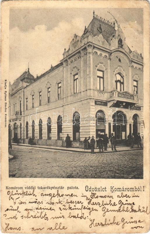 1904 Komárom, Komárnó; Komárom vidéki takarékpénztár palota. Spitzer S... https://www.darabanth.com/de/412-Fernauktion/412.0/Ansichtskarten/Slowakei~2000008/1904-Komarom-Komarno-Komarom-videki-takarekpenztar-palota-Spitzer-Sandor-kiadasa-savi~II2448352
