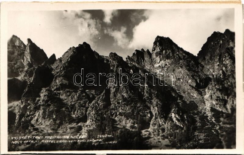 Beschreibung: Tátra, Magas-Tátra, Vysoké Tatry; Prostredny Hreben / Mittelgrad vom Kohlbachtal / Középorom / mountain peak. Fot. Hunfalvy (vágott / cut)