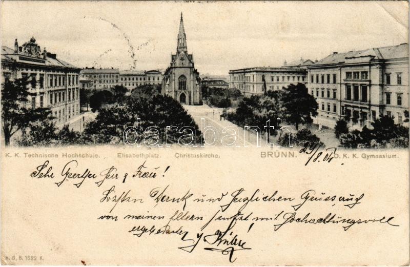 Beschreibung: 1904 Brno, Brünn; K.k. Technische Hochschule, Elisabethplatz, Christuskirche, Gymnasium / schools, church, square (EK)
