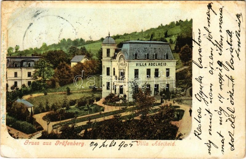 1905 Lázne Jeseník, Grafenberk, Bad Gräfenberg; Villa Adelheid (fl) https://www.darabanth.com/de/412-Fernauktion/412.0/Ansichtskarten/Tschechische-Republik~2000029/1905-Lazne-Jesenik-Grafenberk-Bad-Grafenberg-Villa-Adelheid-fl~II2564043