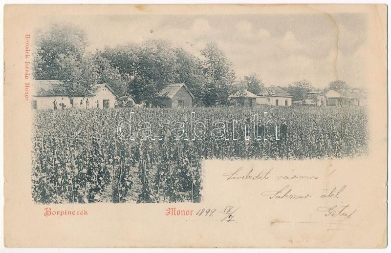 1899 (Vorläufer) Monor, Borpincék, szőlő. Herodek István kiadása (r) https://www.darabanth.com/de/412-Fernauktion/412.0/Ansichtskarten/Ungarn~2000006/1899-Vorlaufer-Monor-Borpincek-szolo-Herodek-Istvan-kiadasa-r~II2572042