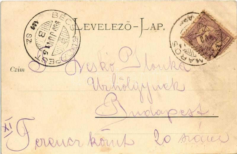 Beschreibung: 1900 Nagymaros, látkép. Stefan Zoller kiadása + "BÉCS - BUDAPEST 117. SZ. B" vasúti mozgóposta bélyegző (r)