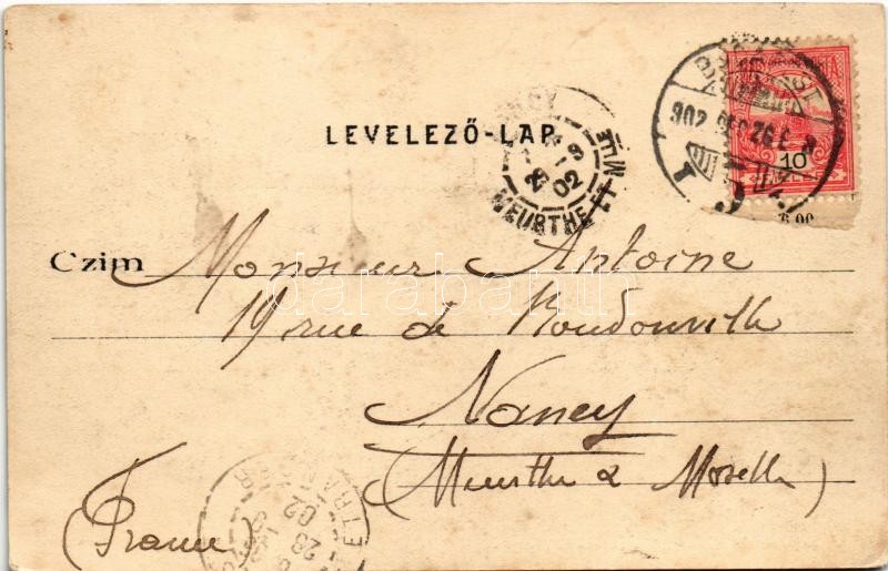 Beschreibung: 1902 Budapest XIII. Lipót körút, Café Vígszínház kávéház, Noszlopi Henrik üzlete, villamosok. Divald Károly 213. sz. (r)