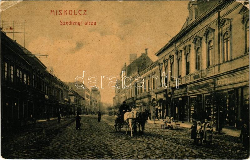 1909 Miskolc, Széchenyi utca, Takarékpénztár, Berliner üzlete. W.L. 10... https://www.darabanth.com/de/412-Fernauktion/412.0/Ansichtskarten/Ungarn~2000006/1909-Miskolc-Szechenyi-utca-Takarekpenztar-Berliner-uzlete-WL-1082-EK~II2571968