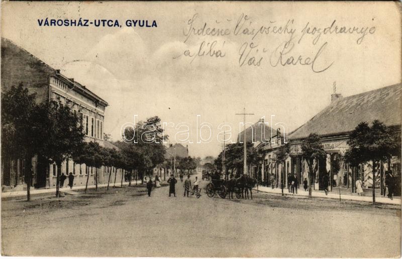 1915 Gyula, Városház utca, üzlet https://www.darabanth.com/de/412-Fernauktion/412.0/Ansichtskarten/Ungarn~2000006/1915-Gyula-Varoshaz-utca-uzlet~II2567875