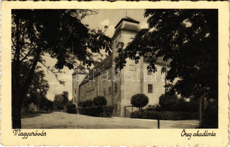 1940 Magyaróvár, Mosonmagyaróvár; Öreg Akadémia (fa) https://www.darabanth.com/de/412-Fernauktion/412.0/Ansichtskarten/Ungarn~2000006/1940-Magyarovar-Mosonmagyarovar-Oreg-Akademia-fa~II2567732