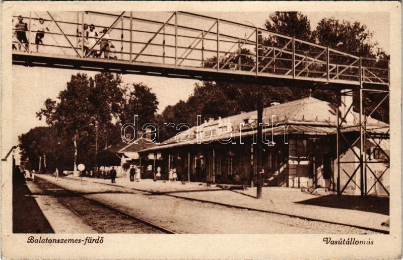Balatonszemes-fürdő, vasútállomás, vasúti felüljáró híd (EK) https://www.darabanth.com/de/412-Fernauktion/412.0/Ansichtskarten/Ungarn~2000006/Balatonszemes-furdo-vasutallomas-vasuti-feluljaro-hid-EK~II2566310