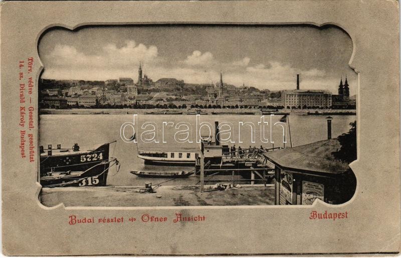 Beschreibung: Budapest I. Budai részlet, rakpart, gőzhajó. Divald Károly 14. sz. (EK)