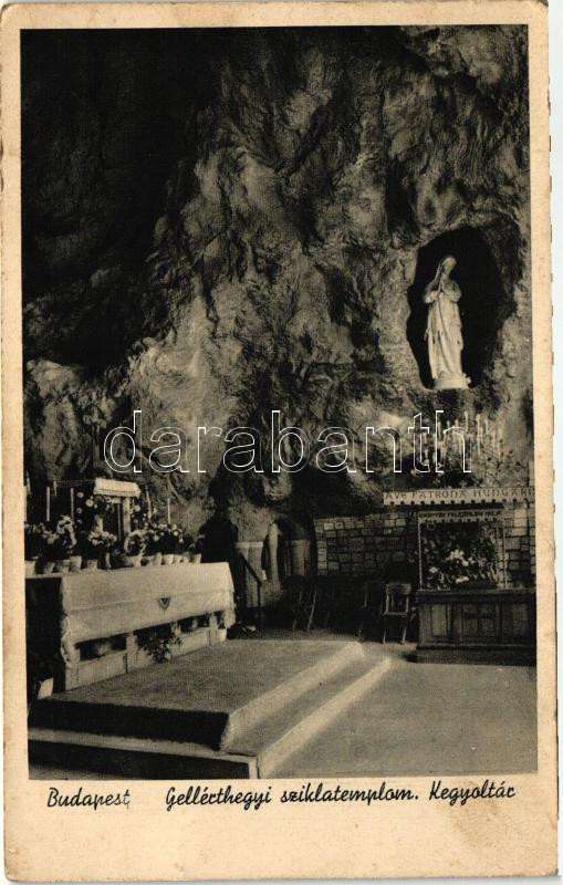 Budapest XI. Gellérthegyi sziklatemplom, Kegyoltár (EK) https://www.darabanth.com/de/412-Fernauktion/412.0/Ansichtskarten/Ungarn~2000006/Budapest-XI-Gellerthegyi-sziklatemplom-Kegyoltar-EK~II1352913