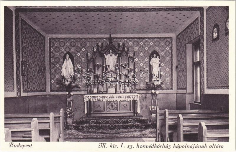 Budapest XIII. M. kir. I. sz. honvéd kórház kápolnájának oltára, belső https://www.darabanth.com/de/412-Fernauktion/412.0/Ansichtskarten/Ungarn~2000006/Budapest-XIII-M-kir-I-sz-honved-korhaz-kapolnajanak-oltara-belso~II2382138