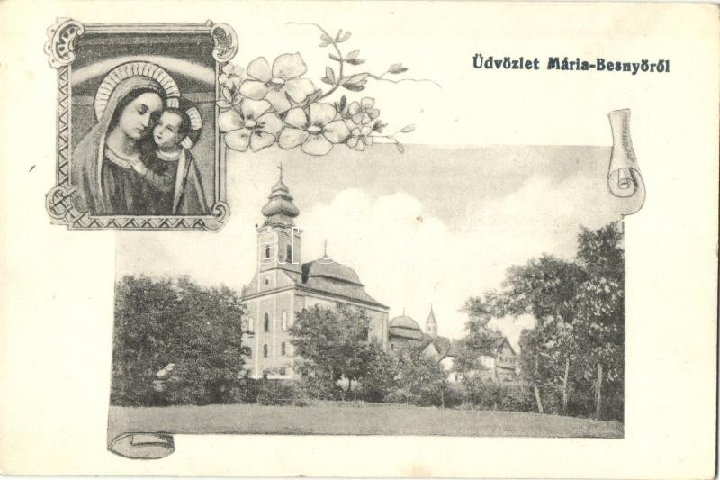Máriabesnyő (Gödöllő), Templom. Art Nouveau, floral (EK) https://www.darabanth.com/de/412-Fernauktion/412.0/Ansichtskarten/Ungarn~2000006/Mariabesnyo-Godollo-Templom-Art-Nouveau-floral-EK~II1816968