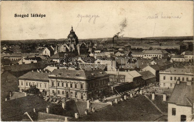 Szeged, látkép zsinagógával. Grünwald Herman kiadása (EK) https://www.darabanth.com/de/412-Fernauktion/412.0/Ansichtskarten/Ungarn~2000006/Szeged-latkep-zsinagogaval-Grunwald-Herman-kiadasa-EK~II2564819