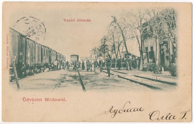 1901 Módos, Jasa Tomic; vasútállomás, vonat, gőzmozdony. Lustein Márcu... https://www.darabanth.com/de/412-Fernauktion/412.0/Ansichtskarten/Vojvodina~2000011/1901-Modos-Jasa-Tomic-vasutallomas-vonat-gozmozdony-Lustein-Marcus-kiadasa-Bahnhof-r~II2571537