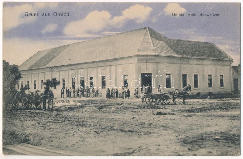 1914 Omlód, Omoljica; Hotel Schweitzer szálloda / hotel, street view (... https://www.darabanth.com/de/412-Fernauktion/412.0/Ansichtskarten/Vojvodina~2000011/1914-Omlod-Omoljica-Hotel-Schweitzer-szalloda-hotel-street-view-EK~II2571576